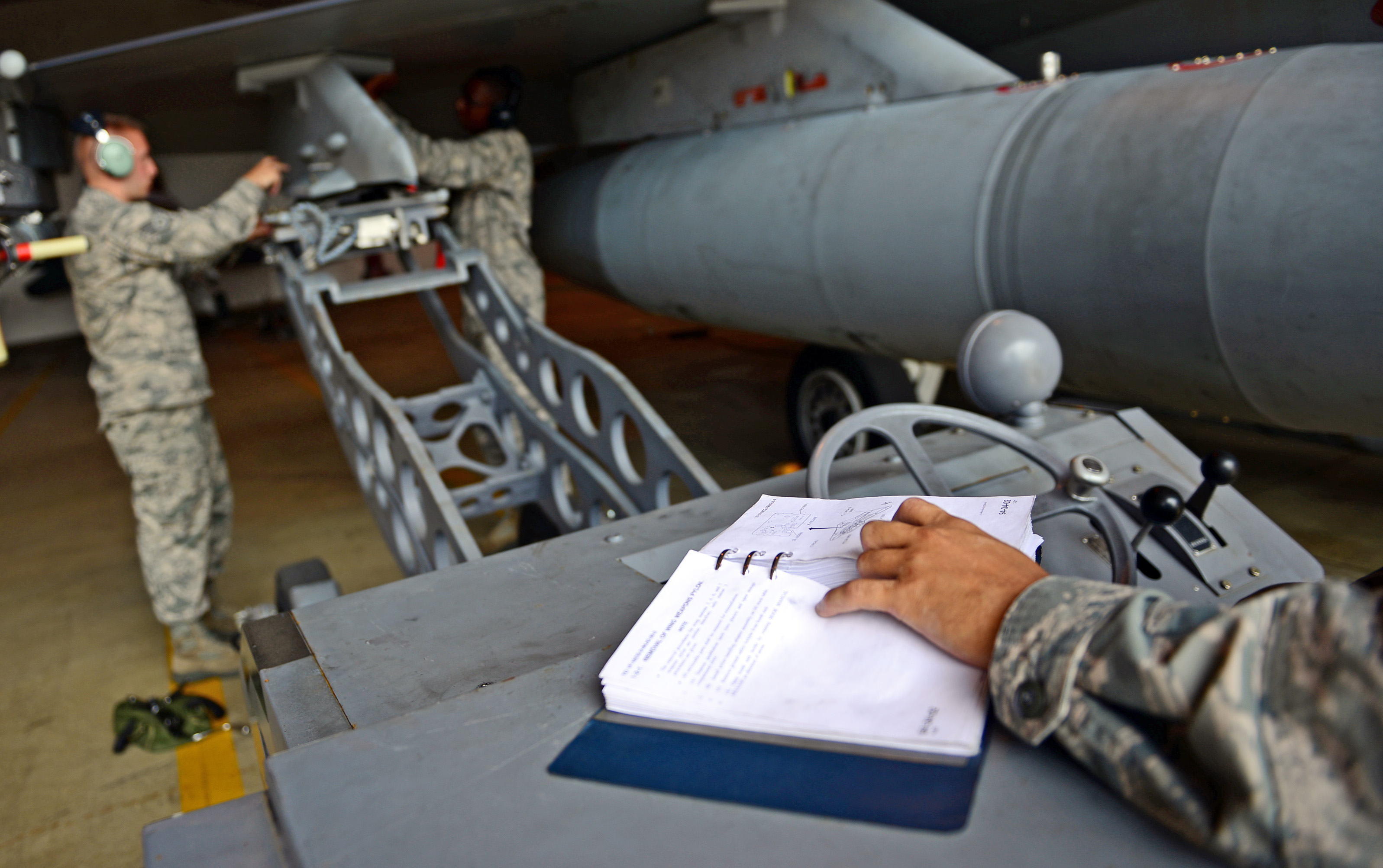 Senior Airmen John Kirkpatrick and Jonathan Thompson, 31st Aerospace Medicine Squadron bioenvironmental engineering journeymen, participate in a routine full face respirator fit test March 14, 2013 at Aviano Air Base, Italy. Bioenvironmental engineer technicians perform routine gas mask, full face respirator, and other emergency response masks fit test weekly to ensure that it protects the health on the Aviano Airmen. (U.S. Air Force photo /Airman 1st Class Jenay Randolph)