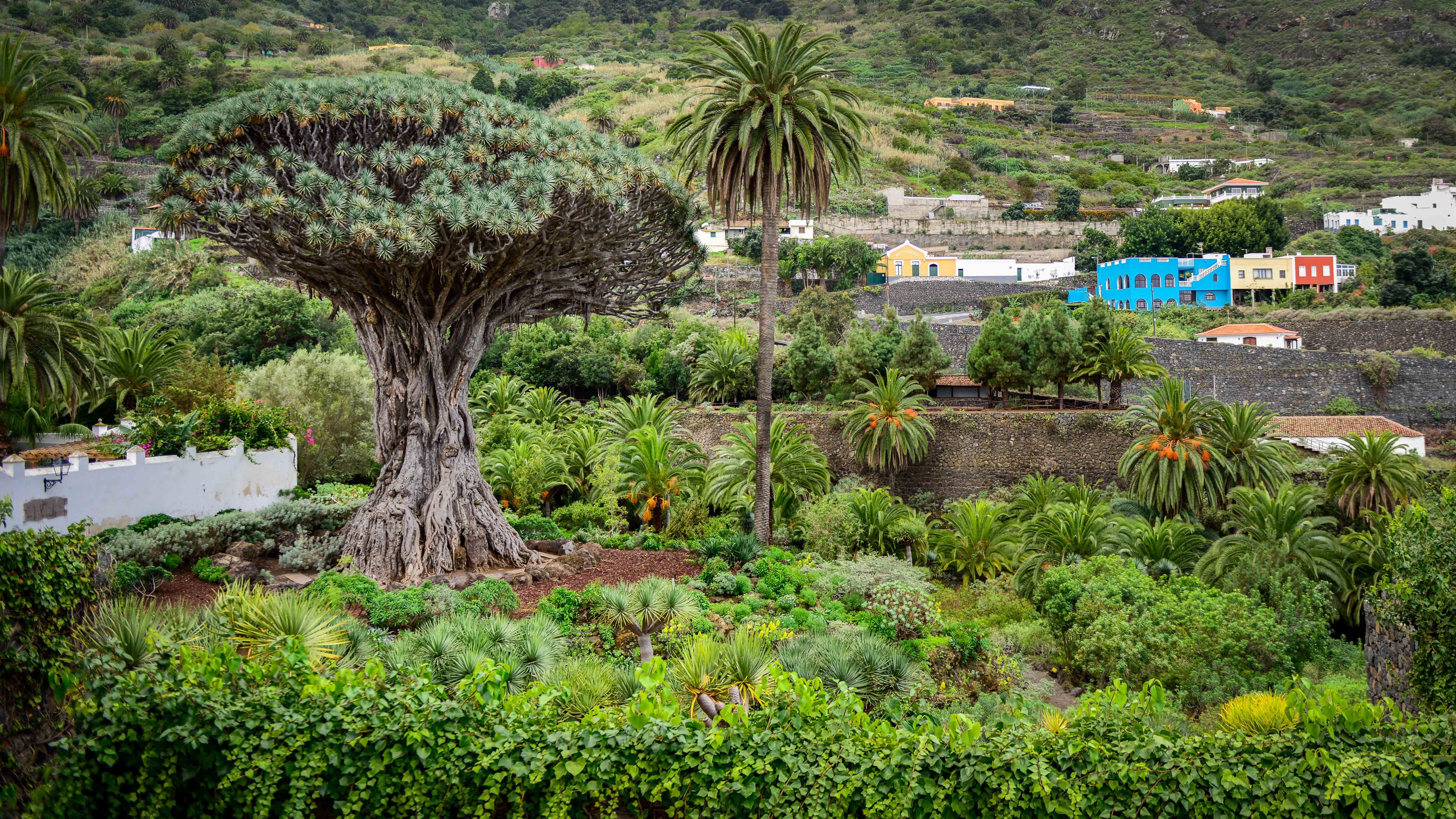 Next on our itinerary was Parque del Drago located next to the Church of San Marcos in the municipality of Icod de los Vinos. In the garden stands a more than 16-meter-high dragon tree, referred to locally as “El drago milenario” or the “Thousand-year-old dragon.” Although you can pay an entry fee to get up close and personal with this giant, we opted to view the tree from the plaza besides the Church of San Marcos, where you can get a full view of the garden for free.