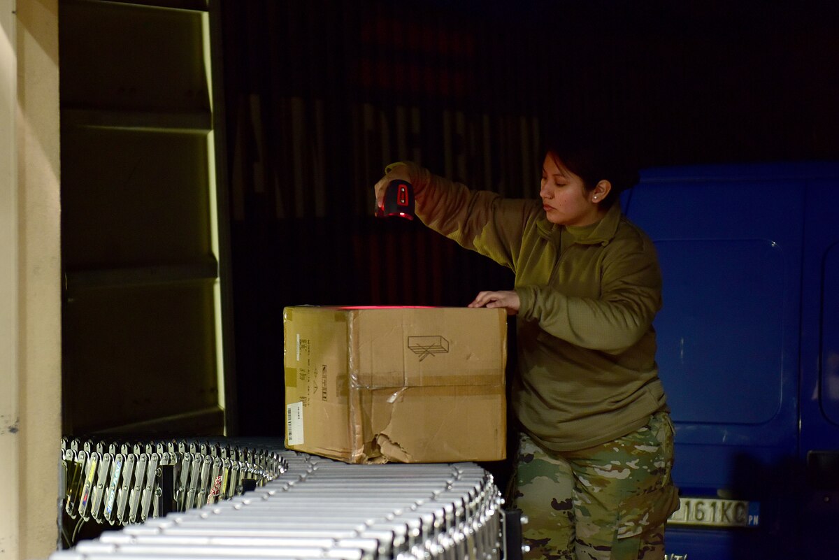 The moment the truck rolls up to the delivery area, Airmen of the 31st Force Support Squadron’s military post office begin working as a well-oiled machine: unpacking, scanning, and accounting for each parcel as it makes its way into the building.