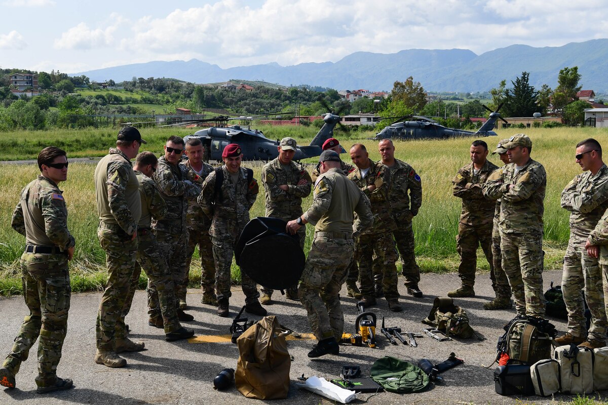 ALBANIA -- Pararescuemen assigned to the 57th Rescue Squadron perform training for the Albanian army special operations unit as part of exercise Astral Knight 2023 in Albania May 18, 2023. Exercises like AK23 support NATO Allies and Partner nation’s operational readiness across all domains and is paramount to strengthening partnership, crisis response and deter threats.