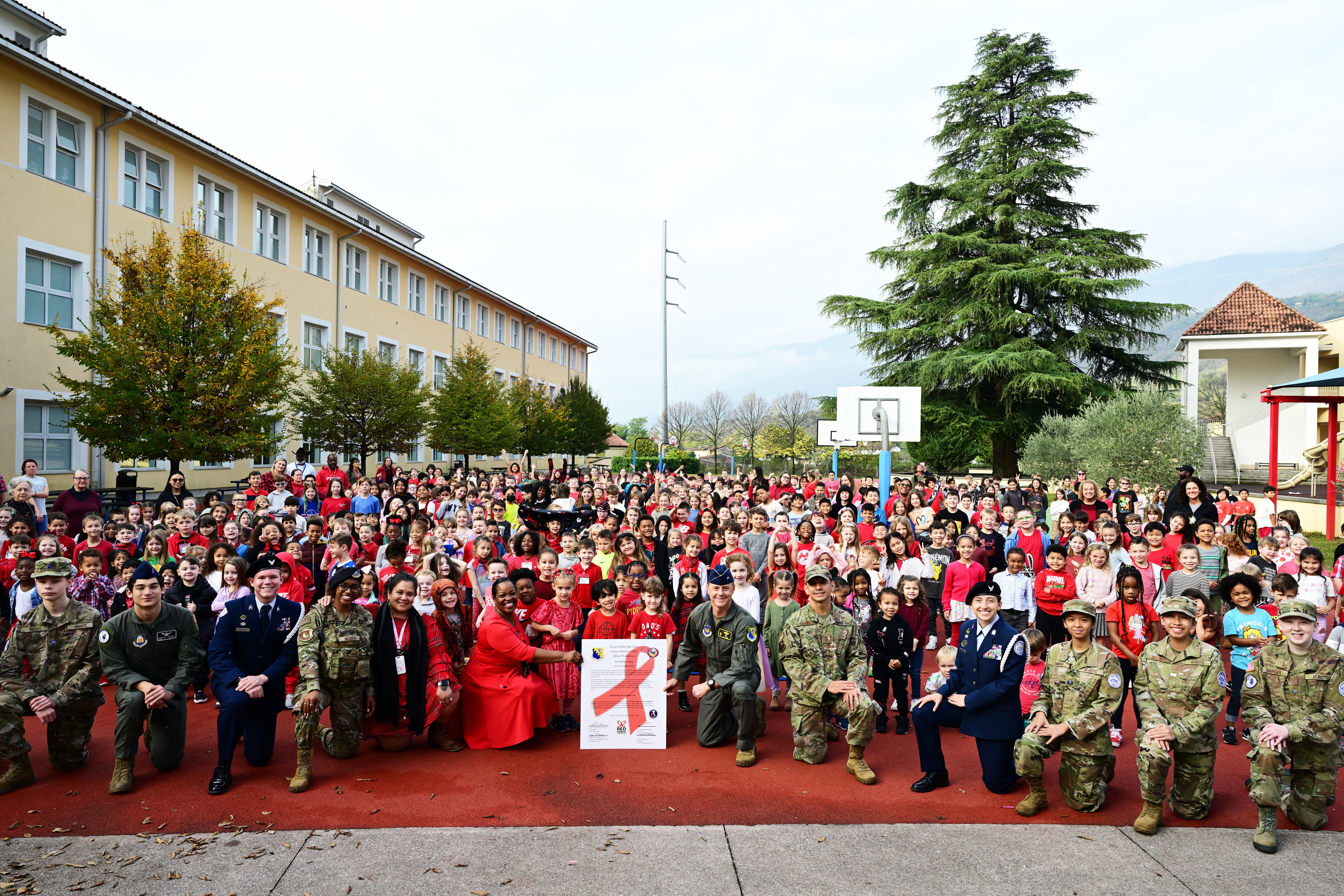 U.S. Air Force Brig. Gen. Tad Clark, 31st Fighter Wing commander, signs a proclamation on the importance of living a drug free lifestyle at Aviano Air Base, Italy, Oct. 28, 2024. Red Ribbon Week made its official debut in 1988, following the capture and murder of U.S. Drug Enforcement Administration agent, Enrique “Kiki” Camarena, by drug traffickers in Guadalajara, Mexico in 1985. (U.S. Air Force photo by Senior Airman Essence Myricks)
