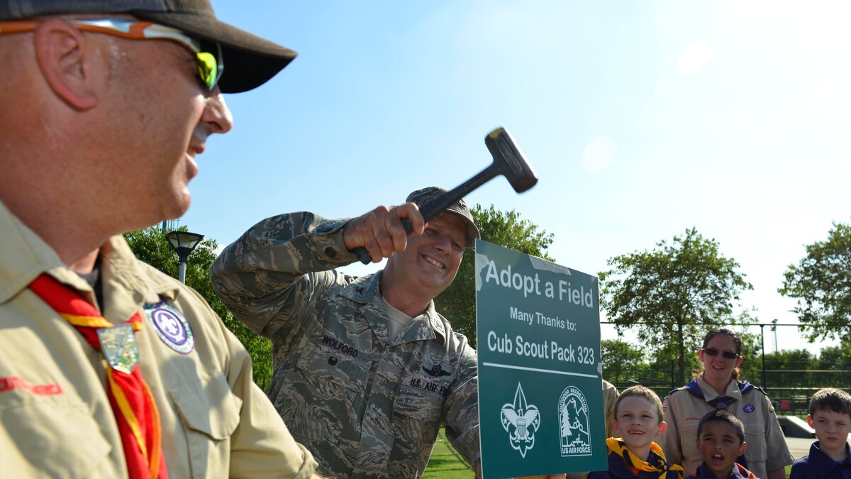 AVIANO AIR BASE, Italy -- The Aviano Cub Scouts Pack 323 hosted a ceremony to celebrate their “adopt a field” initiative, June 29, 2016, at Aviano Air Base, Italy. The pack took on the responsibility to manage the cleanliness of Freedom Park. Col. Bryan Wolford, 31st Fighter Wing vice commander, thanked the pack for their efforts in helping Team Aviano enjoy a cleaner and safer park.