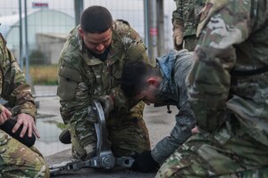 A U.S Air Force F-16 Fighting Falcon from the 555th Fighter Squadron takes flight at Aviano Air Base, Italy, Oct. 24, 2019. The unit performs air and space control and force application roles of counterair, strategic attack, and counterland including interdiction and close-air support in support of