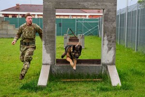 Prefect of Pordenone, Michele Lastella (left), accepts a commander’s coin from U.S. Air Force Brig. Gen. Tad Clark, 31st Fighter Wing commander (right), after his first visit as Prefect to Aviano Air Base, Italy, Jan. 14, 2025. Lastella met with several units around the 31st Fighter Wing to include